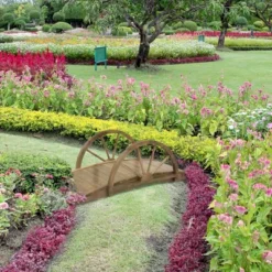 Outsunny 4.7′ Garden Bridge, Arc Wood Footbridge, Decorative Pond Bridge With Side Rails