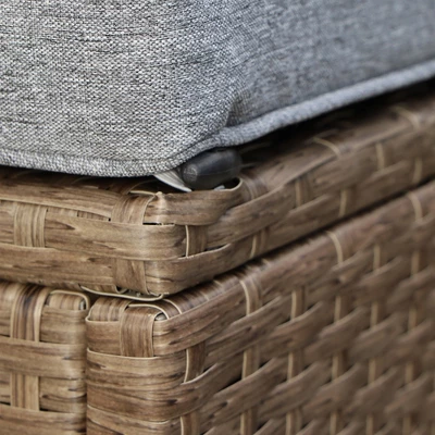 - Outdoor Sofa Set: Our outdoor sectional sofa set is handwoven with PE rattan, a material that has all the tropical style of classic wicker, with better resistance water and weathering. Reinforcing each seat is a strong galvanized steel frame, that not only withstands water too, but it also helps maintain an extra high 395 lbs. weight capacity.