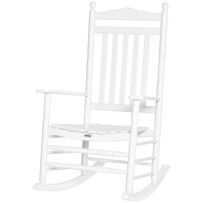 Rock back and forth in the warm afternoon sun with patio rocking chairs from Outsunny. Comfort meets quality with this outdoor rocking chair. The chair features a solid and natural wood for a stable structure and a wide, ergonomic seat that supports the body to provide the ultimate lounging experience. The paint finish is UV resistant and won’t fade quickly. Enjoy a relaxing day in the garden, backyard, or patio with this stylish rocking lawn chair from Outsunny.